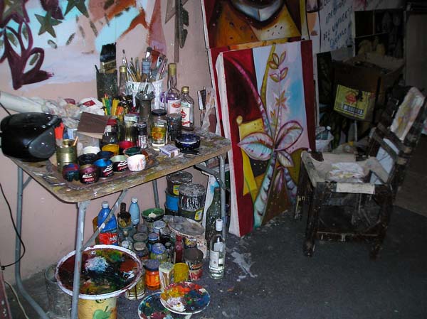 Curiosear por todo el perímetro las miles de cosas, artefactos y materiales heterogéneos que lo inundan, atisbar el caos aparente, las manchas de color en las paredes y en los escasos muebles, los bastidores apoyados en cualquier sitio, los innumerables trapos tirados aquí y allá, los lienzos sin estrenar y los emborronados adosados a la pared, las sillas y asientos destartalados, en fin, asistir a la vida palpitante de todo un universo por el que confluye y camina el misterio de la creación, es una oportunidad que no se presenta todos los días.