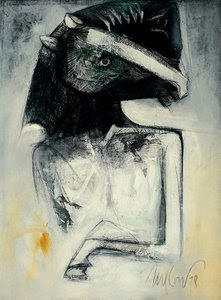 Al pasear, al final del día, por el malecón, nos tropezamos con esa criatura pintada por Nelson Domínguez, que nos saludó y nos invitó a fecundarla (¿también ella?). Disimulamos como pudimos nuestro espanto y le susurramos con palabras roncas que no podíamos, que nuestro semen ya no frecuentaba sendas desde que una vez que se asomó quedó solo y sin destino. El ron le sustituyó como único alimento que nutre el trazo de la pasión de nuestro infortunio.
