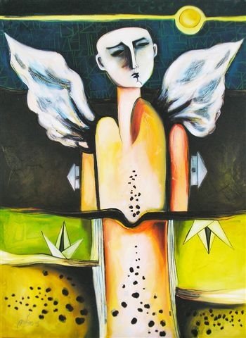 El habitante, radiante de una luz cósmica, se refleja en su sueño entre ambas fuerzas colosales y extiende sus alas para saber si el vuelo es el destino que anuncia poesía y esperanza.