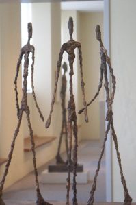 Giacometti ha urdido una humanidad con la materia del hierro pero sin la fuerza de su resistencia, con la fragilidad propia de un ente perdido, desorientado, que busca su lugar y no lo encuentra. Van solos o en grupos pero como esfinges obsesionadas en comunicarse la brutalidad nacida a pie de tierra de la que huyen, por eso estiran su efigie hasta donde creen alcanzar la meta de lo divino, de lo infinito en paz.
