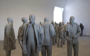 Juan Muñoz, a través de esas criaturas, tal guerreros de terracota, recrea una liturgia para los que están obligados a ver, a tocar, a volver a nacer, a no pedir palabras sino susurros huecos que reverberan en un eco que se pregunta quienes somos. Si acaso ellos que nos contemplan fijamente porque ya saben la respuesta.