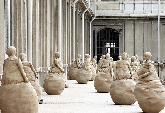 Juan Muñoz, a través de esas criaturas, tal guerreros de terracota, recrea una liturgia para los que están obligados a ver, a tocar, a volver a nacer, a no pedir palabras sino susurros huecos que reverberan en un eco que se pregunta quienes somos. Si acaso ellos que nos contemplan fijamente porque ya saben la respuesta.