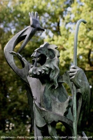 Más que profeta, ídolo que careció de carne por estar privado de humanidad, por ser una semidivinidad mediática, agorera, dogmática, anunciadora de funestos augurios y presagios. El artista español Pablo Gargallo le erige como un icono irascible poseído de un poder terrible y omnímodo, forjado con el implacable hierro que infunde fuerza, avasalla, que inflige el dolor de lo que arrolla y revienta.