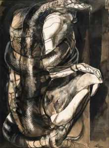 Este pintor, escultor y muralista italiano nacido en Estados Unidos, Rico Lebrun, contiene y depura el gesto plástico, realza la esencia de una corporeidad morfológica cuya arquitectura se muestra anclada en la claridad de las sombras, de las pesadillas y de la muerte.