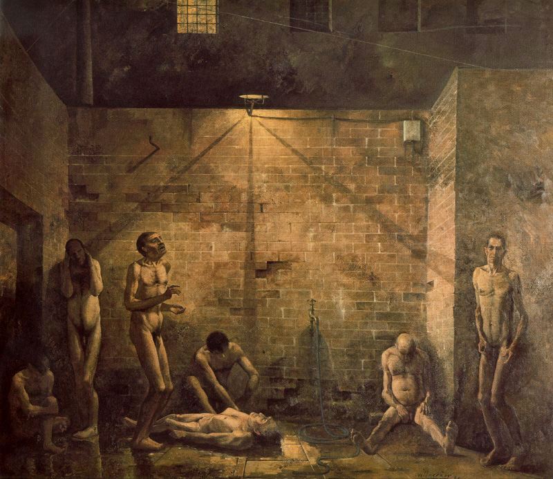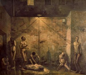 Realmente son obras desgarradoras, y se presiente soledad y aislamiento.La primera obra es un tanto inquietante. Una momia levitando por los pasillos sombríos. A lo largo del pasillo hay una tristeza aterradora que congela la respiración y el alma. El reloj quedó paralizado, pues el lugar está muerto y no se precisan de los minutos ni de las horas. La eternidad de la soledad y el abandono ausente está flotando en el ambiente. La segunda obra se ve una habitación que carece de ventana para oxigenar el lugar, una habitación humilde, la pobreza hace acto de presencia en las paredes, en el suelo, en los cuadros. Ese retrato que observa todos los actos del matrimonio. Esa virgen en la cabecera de la cama mirando cuando hacen el amor, no sé ni cómo les quedaban ganas de acariciarse. A pesar de los pesares, el autor ha plasmado ternura con los colores tan frios que ha pintado el lugar. Se percibe amor a pesar de esos cuerpos arrugados pero que aun necesitan ser acariciados, estimulados, tener contacto y poseerse. Podría ser una habitación de cualquiera de nuestros abuelos, tal vez también de los padres. A pesar de ser una habitación lóbrega, se respira libertad. Ellos pueden salir de la habitación y tomar el sol, pues al abuelo se le ve la marca del culete más blanca, eso es una prueba de que no está encerrado entre esas cuatro paredes.El último cuadro es espantoso. Es más lúgubre que el anterior a pesar de tener más luz. El espectáculo que se ve es dantesco, espeluznante como están de famélicos los hombres. Supongo el autor ha querido dibujar, pintar las cárceles, una cárcel de la edad media, como una especie de mazmorra. Desnutridos y muertos de frío. Tan solo se ve una goma de agua para llevar los excrementos de un lugar a otro, y para que se puedan asear con agua fría. Las dictaduras son así, no hay derechos humanos para nadie, y menos para los encarcelados por no ser simpatizantes del régimen.Saludos
