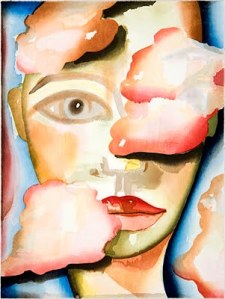 Yo ya he dicho en alguna ocasión que no tengo ni idea de pintar. No he estudiado nada del tema, por lo que es muy normal que cuando hago algún comentario pueda decir barbaridades de la obra. Pero me gusta decir lo que veo aunque no esté en la verdad de lo que el artista quiso transmitir, o lo que al pintar se la pasaba por la cabeza. En el momento de dar los trazos, colores y formas a las obras.Pero como no se me ha prohibido expresarme lo haré. La imagen de la “señora” con los labios pintados de un rojo amapola, por cierto son sus labios el tono más fuerte de todo el cuadro. Lo demás el autor lo ha pintado con una gama suave en pastel. A pesar de ser una dama sin pelo, en la cabeza, y sin pestañas, con aspecto enfermizo, le dan calidez a la cara transmitiendo inquietud y sueños en forma de nubes voladoras. Su ojo vidrioso está fijo y su mirada es expectante. La segunda obra parece un entierro. Todos están serios y uno de ellos esta tumbado. Y en sus cuencas profundas y vacías aparece un rostro. Es una pintura algo tétrica. Si no fuera por el color que le ha dado de rojo, amarillo,… se asemejaría a las obras de Goya en su temporada de poca cordura.La tercera obra son como tres mascaras, o el desdoblamiento de la personalidad. A lo largo de la vida la gran mayoría de los humanos nos ponemos una máscara para no ser reconocidos. Como si quisiéramos pasar página al libro de nuestra vida, o como si pretendiéramos escribir un libro en blanco para comenzar de nuevo.Y la última obra creo que el autor ha dividido la obra en dos. La franja divisoria que está más o menos a la mitad. Son como dos mundos iguales, uno encima de la franja rojo pálido, y otro debajo de esa franja que es con el que quiere cortar. Separar mediante tijeretazos sin ninguna contemplación, ya que hay dos tijeras y se ven fuertes. Es como querer cortar con la esclavitud para dar paso a una libertad ganada.Saludos