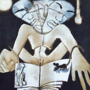 El italiano CLEMENTE es fiel a esa exploración figurativa que mediante una polivalente cobertura cromática da vida a una humanidad perpleja, angustiada, desdoblada, que parece cortar con su pasado si aspira a tener un futuro. Él no desea ir más allá de esta deriva que se convertiría en sacrilegio si no ha de impedir que un unicornio se convirtiese en la lanza que atravesase el espejo que ya estaba roto y descubriese que detrás de él estaban ellos agazapados conspirando contra el propio autor por haberlos desenmascarado.