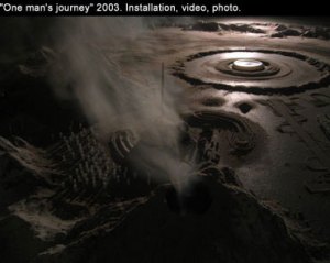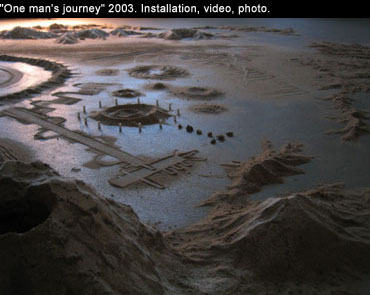 No hay figuras humanas pero sí sus huellas, como si fuesen ellas mismas más importantes y válidas para escenificar una alegoría de lo creado o formado natural y artificialmente. En esa extensión visual, punteada de accidentes y construcciones, se manifiesta, con un solo foco de luz, un entorno ficticio no muy lejano de nuestras coordenadas geográficas, con el único fin de que como espectadores no sólo nos rindamos ante su despliegue sino que también nos preguntemos por el enigma que al final nos interroga sin descanso.