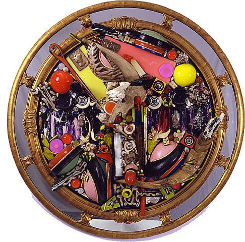 ALFONSO OSSORIO se ve que ha vivido muy bien su niñez y juventud, así como su madurez, de ahí el dibujar y dar mucho color a sus obras. Parece que nos quiere decir a través de estas obras que la vida es un juego, y quien no sabe vivirla (jugarla) se pierde los placeres de este mundo. No esperando encontrar esos placeres en el otro mundo donde todo ha de ser relajado, pacifico y muy aburrido.Estas obras me recuerdan mucho a unas máquinas de juego donde una bolita era zumbada y a golpe de un brazo se la hacía chocar con diferentes elementos que se encendían y puntuaban., también tenían una música estridente, llamativa,… toda la máquina era muy atractiva como lo es la vida.Las dos últimas obras son como los pequeños elementos que forman una maquinaría. También puede ser los restos del naufragio de nuestra vida. Pequeños enseres que en algún momento nos sirvieron, y habiéndolos cogido mucho cariño, somos incapaces de tirarlos, por lo que los vamos amontonando en cajitas o bandejitas.Saludos
