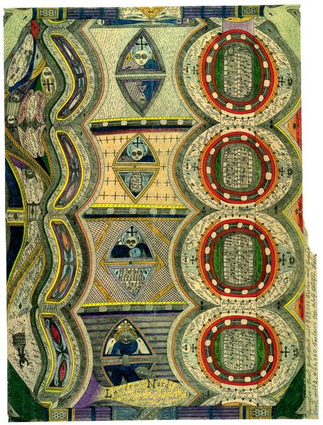 Puede ser cierto que el suizo WÖLFLI, desde su confinamiento, haya podido comenzar a verse y situarse dentro de sí mismo desde que inició una alternativa mejor a su locura o una forma de utilizarla y/o servirse de ella como un medio de conocimiento.