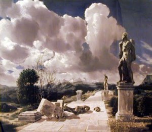 El cielo rompe la calma de un paisaje que está pensando, cavilando en lo que ha sido y lo que es o para lo que ha quedado. Quizá es una metafísica del miedo a ser mortal, y vivir con ello y a pesar de ello, toda la vida. O también, la manera de resistirse a ver y convivir con el tiempo presente.