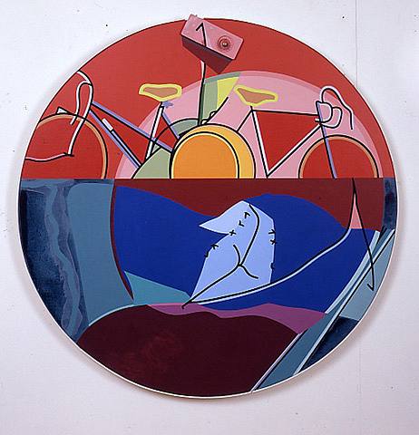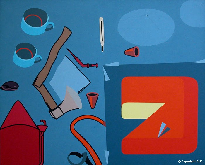 • Por eso TELAMAQUE oficia la ceremonia con un rito jubiloso, danzarín, alborozado, como queda de manifiesto en cada uno de sus trabajos, que, en colores planos, ensamblan elementos dispares que descubren afinidades o asociaciones plásticas en el momento que salen a la luz.