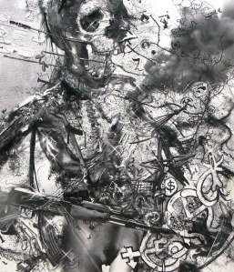 No hay avatar contemporáneo que esa deconstrucción no reconfigure, no constituya a partir de sus raíces alfabéticas. Así, según el artista argentino MARCACCIO, se va afirmando y justificando el arte como conocimiento crítico y pensamiento autocrítico. Y ello sin merma de ese delirio de formas espesas pigmentadas que se ordenan de acuerdo al mapa de sus propias emociones y conforme a una sed de sentido que se determina en función de lo que no ha querido continuar siendo una vuelta sobre sí mismo.
