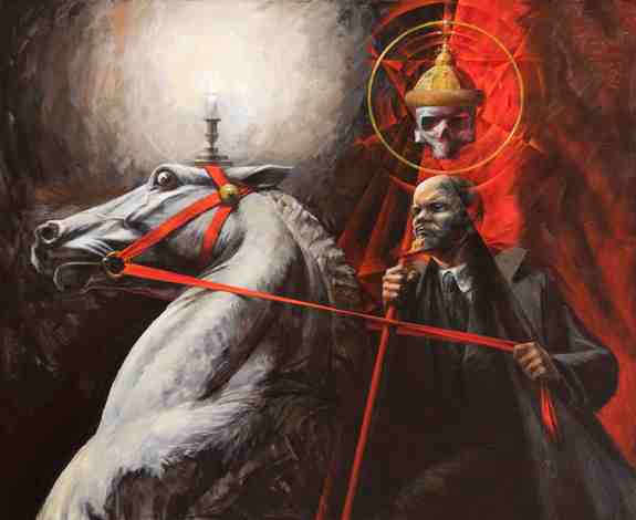 Fundador de Art borrachos y coautor con Alexander Melamid de innumerables proyectos, el ruso KOMAR, con lo que él llama un nuevo simbolismo, construye una representación en la que la asociación de imágenes y efigies instituye una plástica de símbolos encontrados, reunidos y cosificados en su carácter de convidados a no ceder y sí determinar.