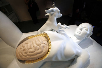 El norteamericano EDWARDS busca la controversia con sus esculturas: representación del parto de Britney Spears; el meconio (o primera deposición) en bronce del hijo de Tom Cruise y Katie Holmes; el busto de Hillary Clinton; la autopsia de Paris Hilton. Todo vale.