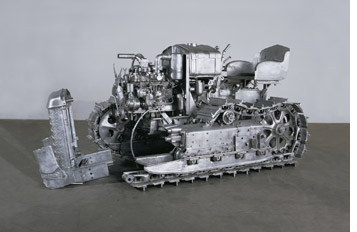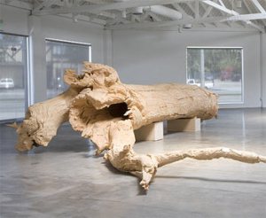 Nos deja admirados la majestuosidad del árbol caído como un icono sagrado al que estamos obligados a rendir tributo. Basculamos entre la consternación y la interrogación delante del ser sostenido en el aire contra la pared, por remitir a imágenes de tortura, sacrificio y muerte. Y la desembocadura de esa máquina con el pene erecto, epítome de una coreografía visual que tiene puesto el objetivo en la conmoción de nuestra mirada y nuestros cuerpos.