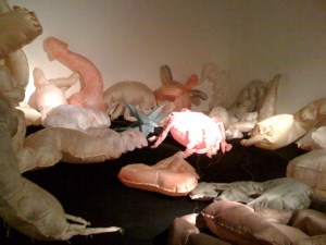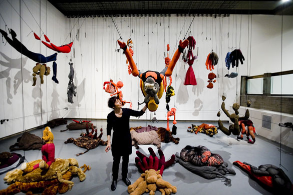 Jardines de infancia o paredes retablo que no silencian los gritos de unos objetos vivos o no acallan los improperios de los peluches o los guantes. Señal de que los símbolos no cuentan tanto como sus imbricaciones, ni tienen tanto interés sus claves como las formas alineadas en unos ámbitos que desnudan y escenifican la sintaxis de una pasión por contemplarnos en su interior jugando a ser el juego del haz y el envés, juguetes de una pesadilla que se reclama dueña de la vida y el arte.