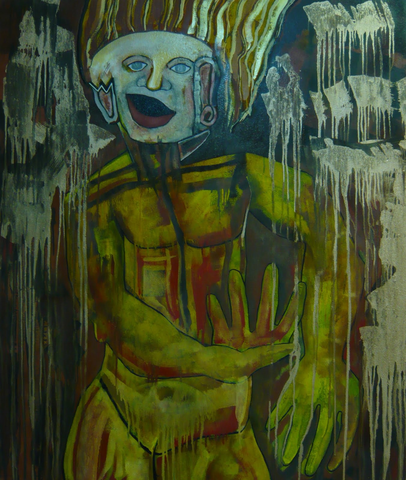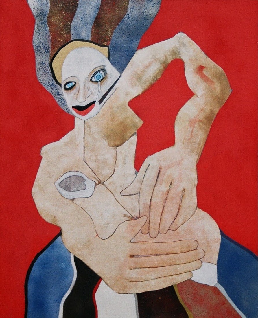 Sin embargo, en su serie última las salpicaduras y goteos de las lágrimas deforman, enmascaran, tapan tipos y contornos -la carne reducida a polvos pigmentados-, hasta quedar sus siluetas como fantasmas implorantes en unas nubes cromáticas que definen los núcleos de la trama.