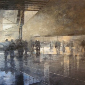 En los lienzos de la artista y arquitecta argentina afincada en España BERGOGLIO amanece y anochece un paraje urbano, que es una panorámica arquitectónica en que las formas, entre brumas y velos, se visten para albergar alientos.