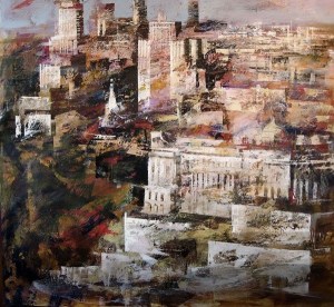 Después viene esa facultad vivaz de revestir cromáticamente esas urbes que impregnadas con esos raspados algodonosos están como en movimiento, en un dinamismo congregador de un interior de vidas y sucesos. Es la poesía de un tiempo edificado cuajado de luces y sombras. No sé si era esa su voluntad o intención, pero la marca de la definición la ha dejado sellada.