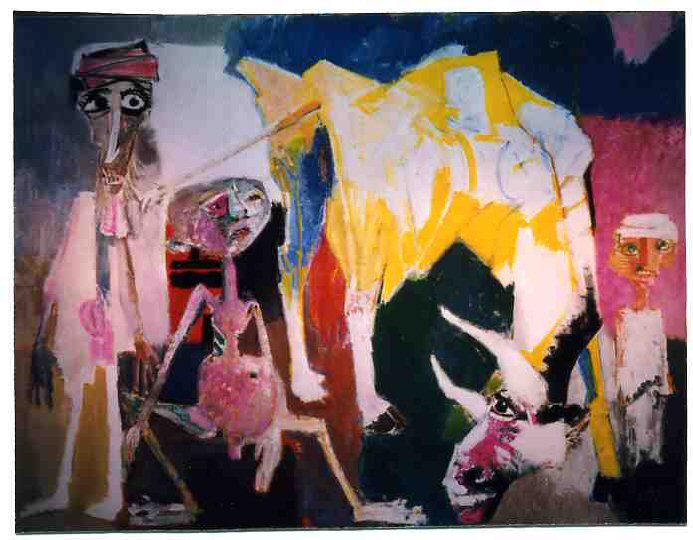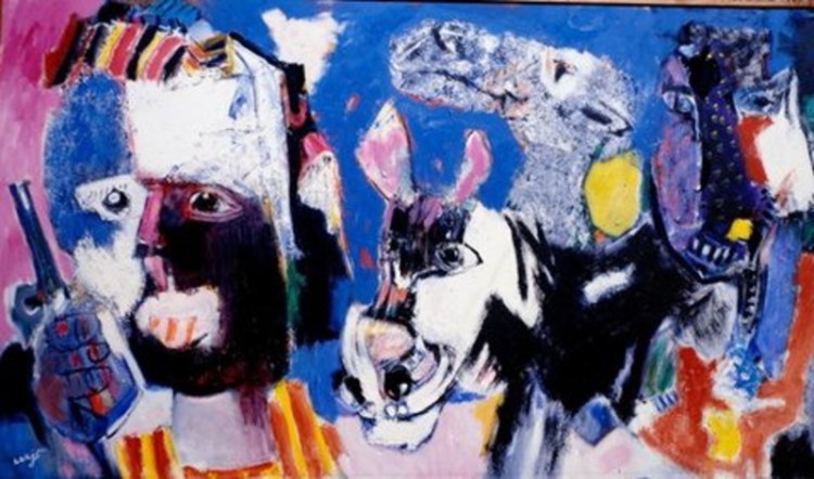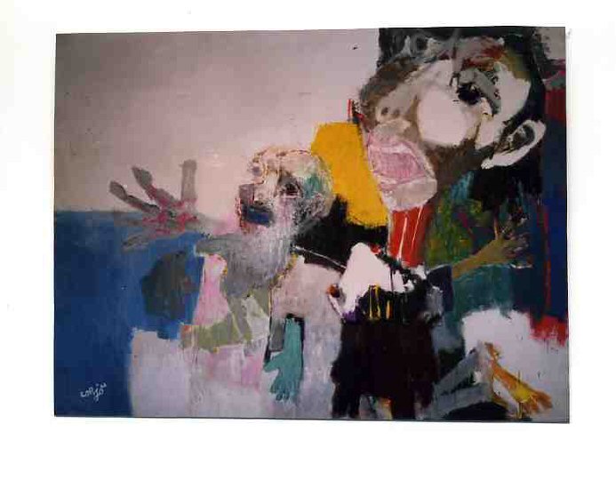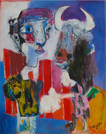 Al núcleo figurativo el francés LORJOU le confiere la insolencia expresiva propia de esa consideración del hombre como comedor de carne roja, patatas fritas, fruta y queso. Pero hay más, porque detrás de esa determinación plástica viene la condición madura de una representación marcada por un sentido total de la existencia.