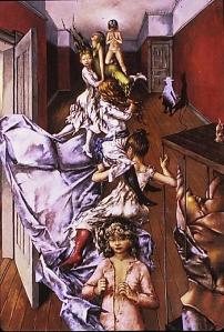 Y cuando llegó la singladura, la norteamericana TANNING, compañera y cónyuge de Max Ernst, concibió la forma de llevarla a cabo, configurarla desde la vertiginosidad que le es propia, suya y festejada.