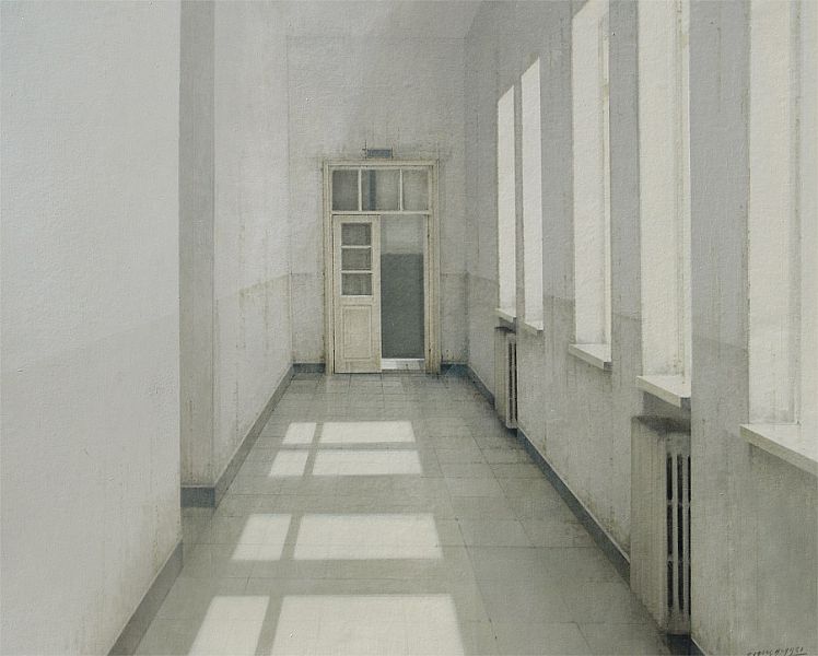 En la pintura del español MORAGO asoma la intrascendencia del rincón de cada día, ése que a la vejez, al transcurrir sin promesas, apenas le da luz y vida. Percibimos, entonces, una frialdad asombrosa, única, a la que cabe un aura perniciosa.