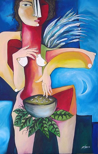 Me dice el cubano Humberto que cada vez sus colores le llevan a una visión más imposible, la de esas vírgenes profanas que cultivan un Malecón vegetal en penumbra, que tallan plantas de vida en arcanos de muerte, que ni lloran ni se agarran a un sexo insurrecto. Siembran como si fuesen diosas del pop, recogen la flor pensando en Matisse, se acarician imaginando la simiente de Picasso, matarían por ser una huida de Miró.