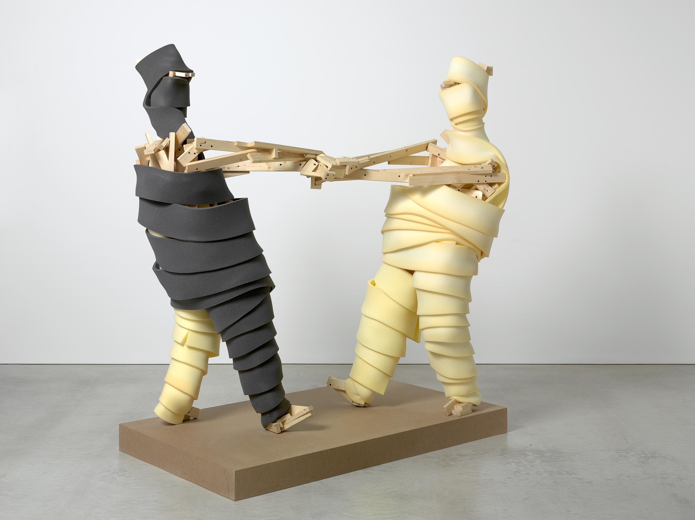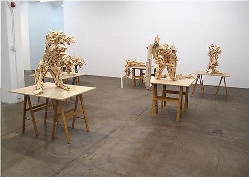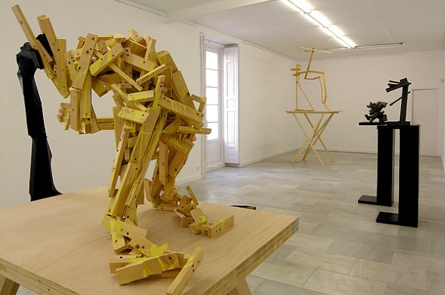Esos muñecos y formas articuladas de madera, algunas incluso pintadas, encierran un encuentro peripatético con el perfil con el que jugamos, suspiramos, bailamos, cedemos y aullamos.