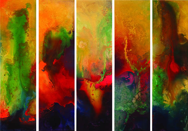 Incandescencia que arroja la materia, magmas lumínicos encerrados en acuarios, burbujas polícromas, paisajes absortos en el cromatismo que generan y emiten, vértigos abisales, refugios de armonías tonales. La poética de una abstracción virtuosa y sensible es la que se aprecia en estas obras del argentino PRIOR.