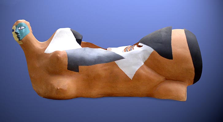 Respecto a la estatuaria hay otras simuladas referencias, las que cabalgan desde antaño pero descubren que la fusión les otorga una nueva condición hogaño. Son poderosas y no temen perder ante el espectador su valor de ídolo, su carácter de fuerza y volumen acabados y misteriosos exhibiendo sobre la piel los colores del cielo.