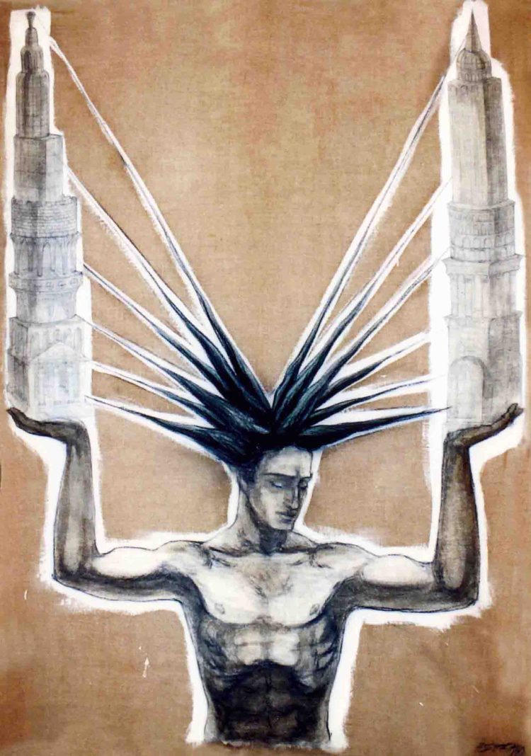Los cuerpos le atan y su obra se desarrolla en ellos y con ellos, los utiliza como intérpretes que experimentan encantos, retóricas, tropos, cielos, atmósferas; no idealiza, y, sin embargo, la fuente de su imaginario conecta con emblemas, estandartes de un ideario flotante.