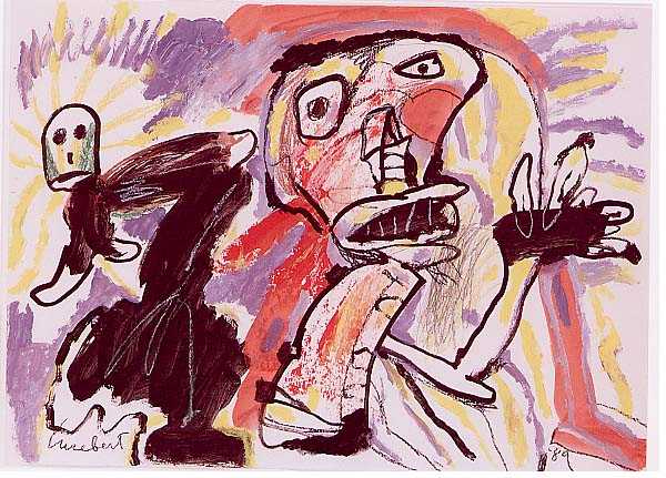 Para que el holandés LUCEBERT no advierta tal dicotomía habría que expurgar la falta de sincronización con su tiempo, que expresa esta y otras manifestaciones que son resumen y síntesis, formulaciones y los rostros del engaño y de la verdad. Pero no hay tal desafinamiento, lo que se produce es una expiación que en el fondo tiene algo de jubiloso y jaranero.