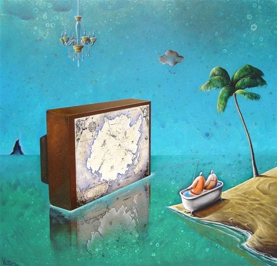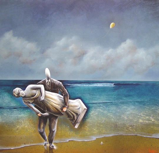 Incongruencias, simuladas y no simuladas, que culminan en espacios que se abren a cielos que admiten delirios, a seres que ya han trascendido y a mares que trajinan consuelos. Sobre esas referencias entre la acción, el suceso y una definición pictórica resplandeciente, se cocina un mundo de contemplar hasta perderlo de vista aquí abajo y esperarlo arriba.