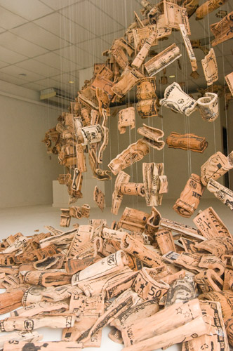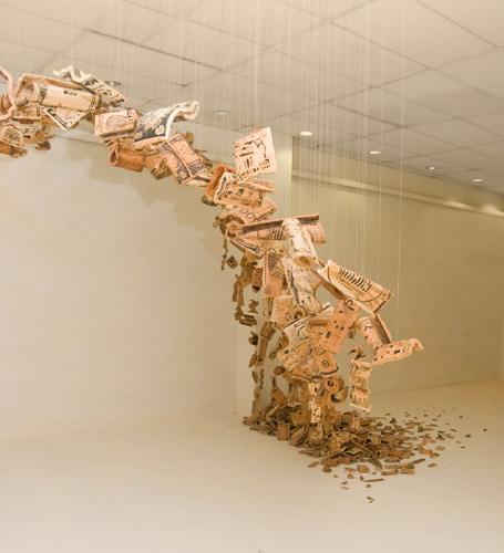 Que se utilice la instalación como el soporte más inherente al alzamiento de esta alegoría, que ofrece al mismo tiempo su paráfrasis, no es más que una consumación del sentido creativo y la plástica que quiere alcanzar con ello. Pero su morfología basada en el colgado del techo ya es otra cuento ya contado.