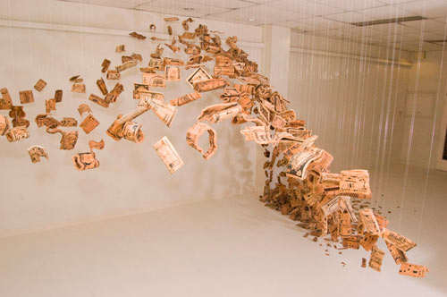 Si se trata de la obra de una artista cubana, del simulacro de la geografía flotante isleña y de unos billetes que vuelan y se manifiestan coreográficamente, estamos ante un cruce de significados que, escenificados, desdoblan la volatilidad de avatares, percepciones y signos de actualidad.