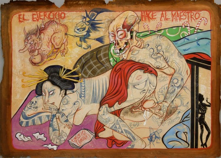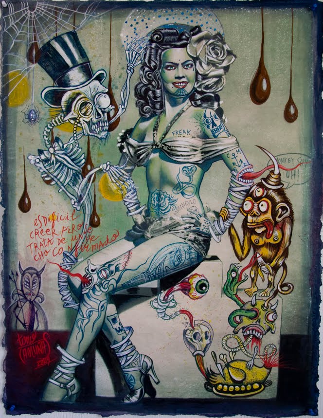 El que CAMUÑAS sea un prodigioso dibujante importa, e importa mucho. El que se sostenga en el delirio también influye, pues cada obra es un campo de exterminio y éxtasis, factores emblemáticos de un trabajo que adquiere visos de jugar a estar fuera de la creatividad y vaya que si está dentro.