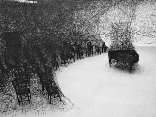 Después viene o no a cuento el marco para la reflexión y la emoción, para el diálogo y la colaboración con la obra y su creador, que en este caso es la escocesa GALLACCIO, la cual toma como motivo un sentido ecológico y poético sobre lo que nace y es destruido, consumido, utilizado, a pesar de que la tela de araña nos tiene atados bajo condena. La música ya no suena.