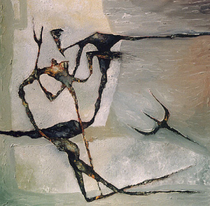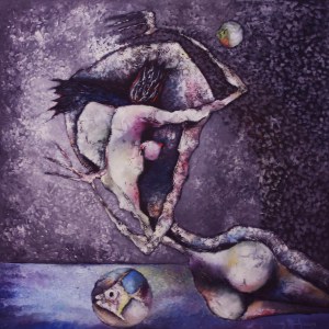 Sobre esa base de leyenda se alza la formulación figurativa de una conspiración que conjura luz y sombras, esplendor y desolación. Cuando lo sagrado irrumpe en lo profano lo contamina de confabulaciones jalonadas por una verticalidad intrincada que busca la vida en el limitado soporte.