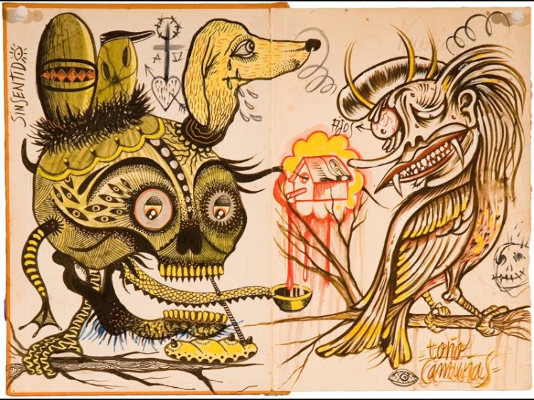 El que CAMUÑAS sea un prodigioso dibujante importa, e importa mucho. El que se sostenga en el delirio también influye, pues cada obra es un campo de exterminio y éxtasis, factores emblemáticos de un trabajo que adquiere visos de jugar a estar fuera de la creatividad y vaya que si está dentro.