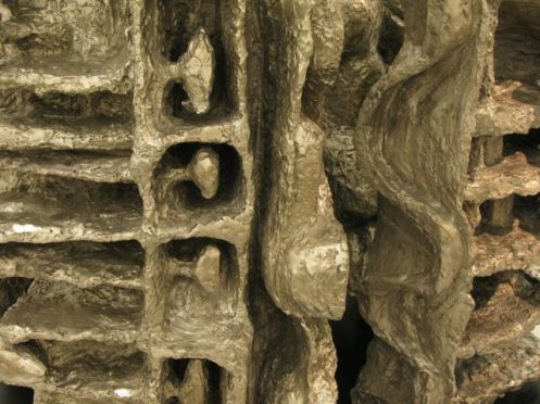 Por tanto, el francés ETIENNE-MARTIN no sólo no lo desmiente sino que lo confirma acentuando y horadando los volúmenes, grabando y labrando tal que un artífice indígena, hasta que el registro de sus introspecciones y fantasías queden finalmente plasmadas.