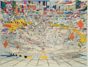 La de esta artista etíope, MEHRETU, es una obra para la libertad desde una opción plástica que lo envuelve entero significándolo, invistiéndolo de espacios abiertos y flotantes, en continuo movimiento, torbellino de señales grafológicas, que aunque estén desesperadas o melancólicas, vibran por la armonía y el fruto del encontrarse a sí mismas.