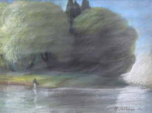 Por tanto ésa es su capacidad, la de penetrar y habitar la topografía como una experiencia sensorial. Es lo que le define como un anacronista, el que investido de su sentido panteísta interpreta una idealización telúrica cuando es un todo con la memoria armónica, o resultado de una fuerza dionisíaca cuando los recursos emocionales se sobreponen a los formales.