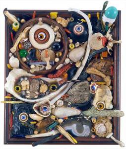 El «art brut» nació en principio como un código de señales para perdedores que a través de él podían ganar, entenderse y crear. OSSORIO, artista nacido en Manila, se sirvió de su hechura para reunir y cubrir en unas superficies lo que él consideraba recipientes biográficos y culturales. Colocó conchas, huesos, maderos, clavos, ojos de muñecas, dados, fragmentos de espejo, bisutería y muchas más cosas.