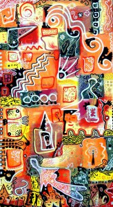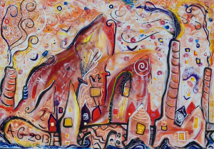 - El georgiano GURGENIDZE lleva al límite de su cosmovisión, de la pertenencia a un origen, a una tierra, a una cultura, una aureola de fulgores irreales. Es una pura incandescencia que se debate entre el signo, lo cósmico y la representación fantástica de su mundo.