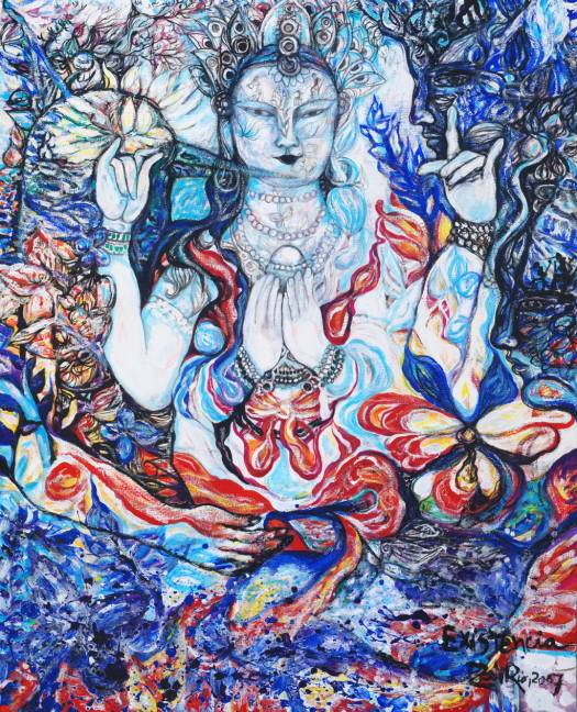 Lo contrario de enloquecer ante esas mamparas intrincadas de paraísos barrocos, modernistas, que constituyen la obra de la cubana ZAIDA, es permitir que tus ecos ópticos reposen en esas densidades cromáticas iluminadas y engalanadas.