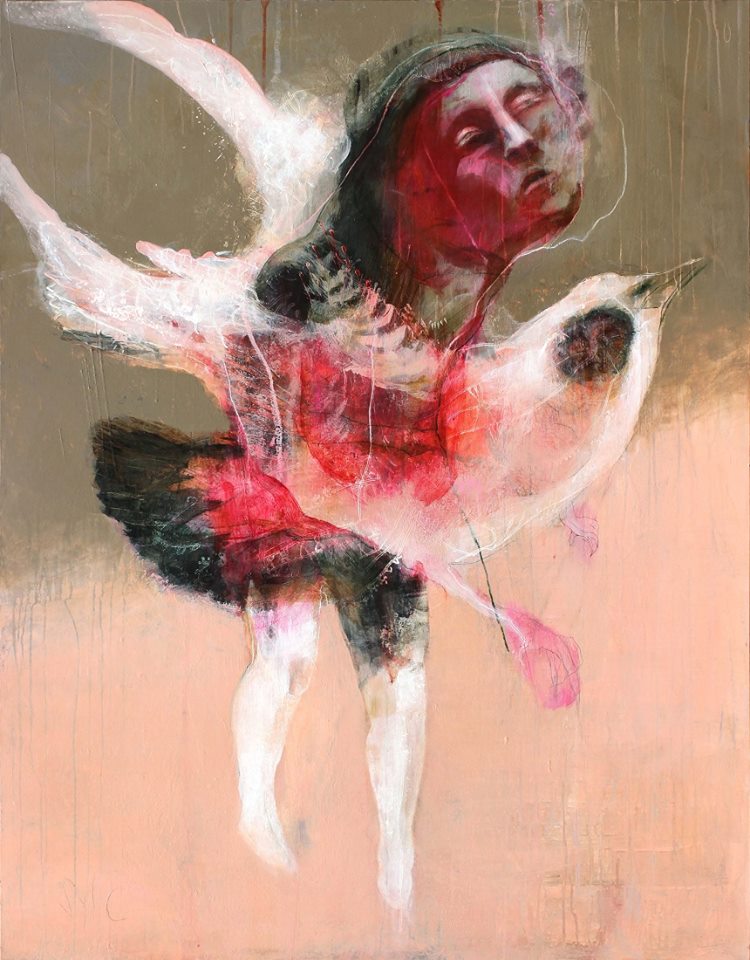 - El color y las texturas las dedica a emponzoñar, a que sus tonalidades sean semilla y génesis de la rabia, del dolor o del odio. Quieren volar para escapar, pero las aves se lo niegan, el espacio las ancla y hasta el felino las asalta.