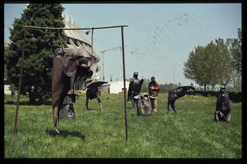 - Seguramente hacían lo que realiza MARTINEZ DEL RÍO con esas vestiduras y criaturas, cuyo significante del signo se corresponde con la forma de la expresión, mientras su significado es la forma del contenido (Hjelmslv). Todo ello para conjurar una realidad visionaria que es a primera vista alucinación y temor.