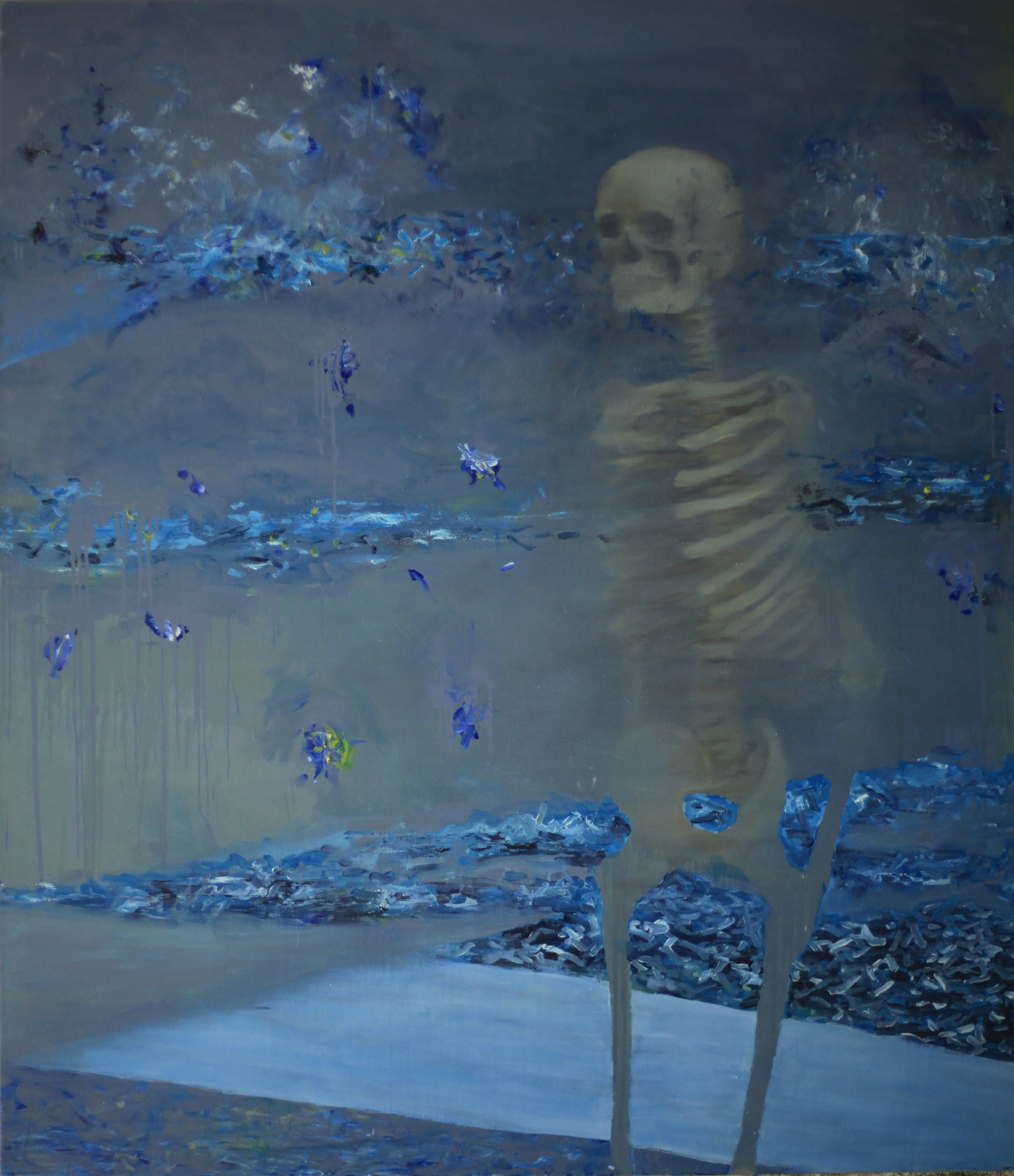 - Son seres que ya no saben donde están, los pigmentos los han desgastado e integrado en un espacio irreal, entre el vacío, con el que sueñan, y la tierra. Quizás poseen un pensamiento en el que va penetrando la osamenta en que se convertirá su mohoso cuerpo, y con él la ciénaga de su misterio.