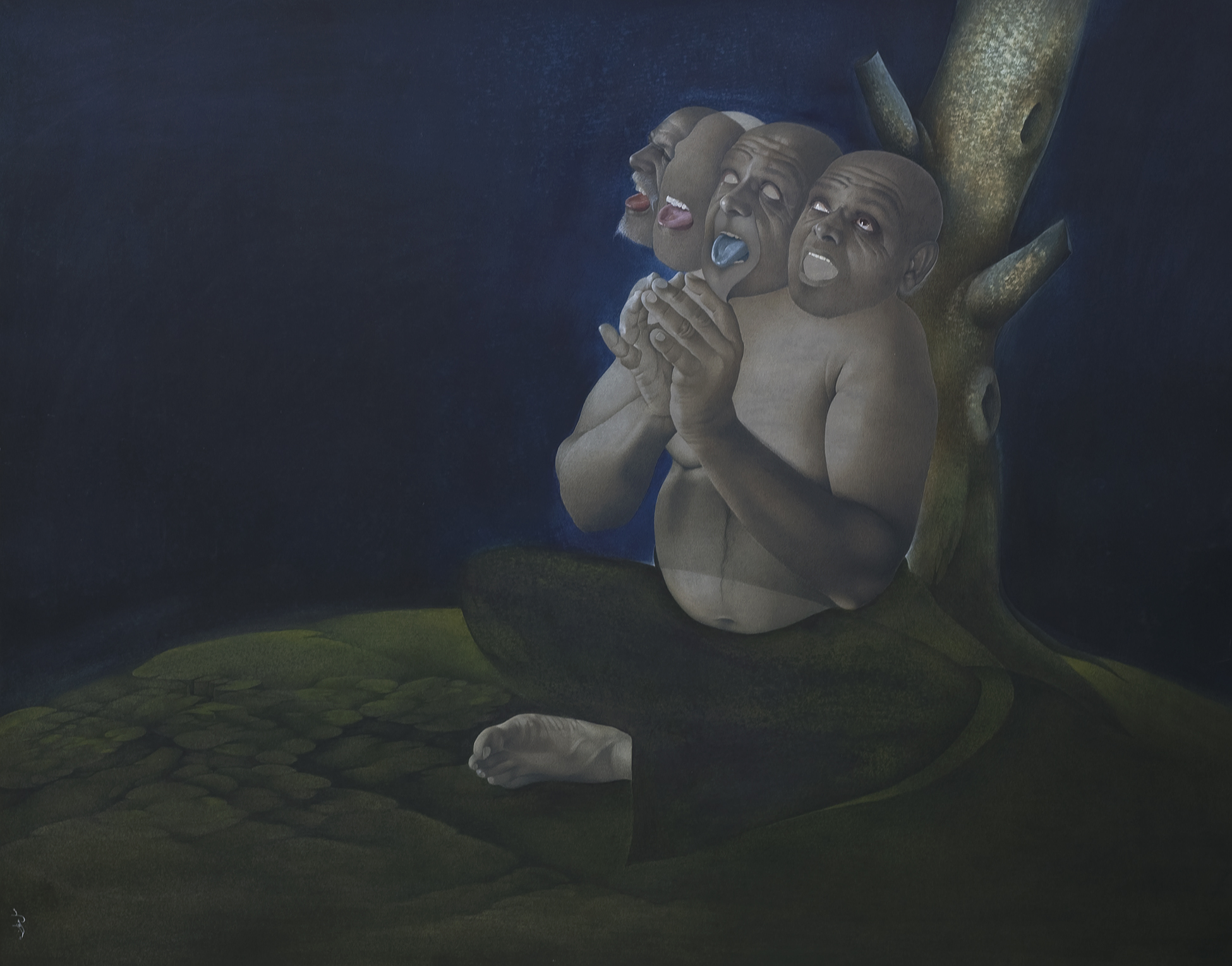 Desde Oriente a Occidente, el pakistaní HASAN, de inicio miniaturista, investiga fisonomías que mediante su concepción plástica -muy virtuosa y minuciosa- muestran el sino de su existencia, sin que ello le impida entregarse a una senda fantástica entre el cielo y la tierra.